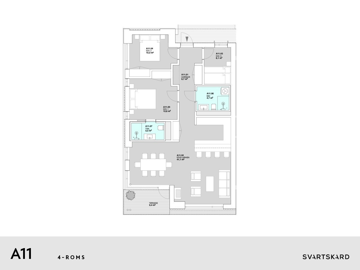 95.2 m2TBA (terrasse- / balkongareal)