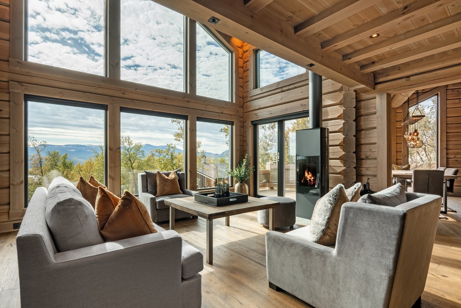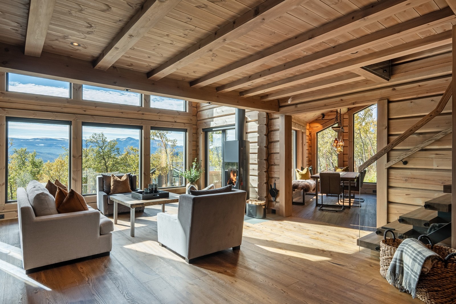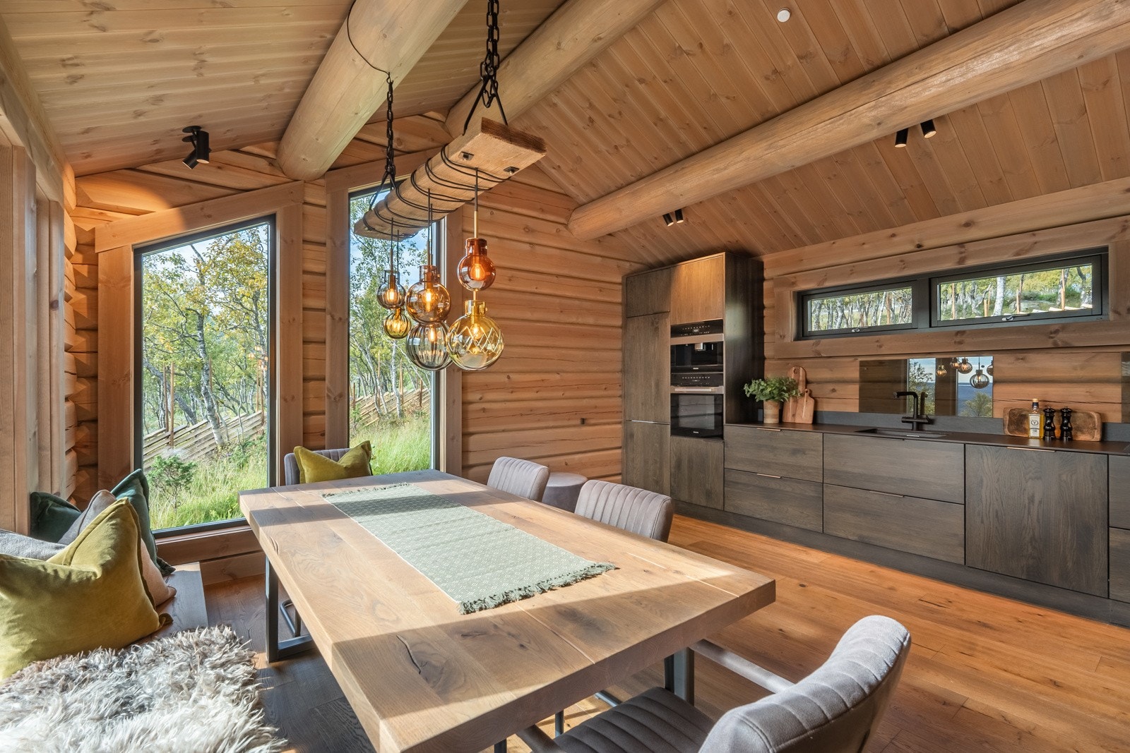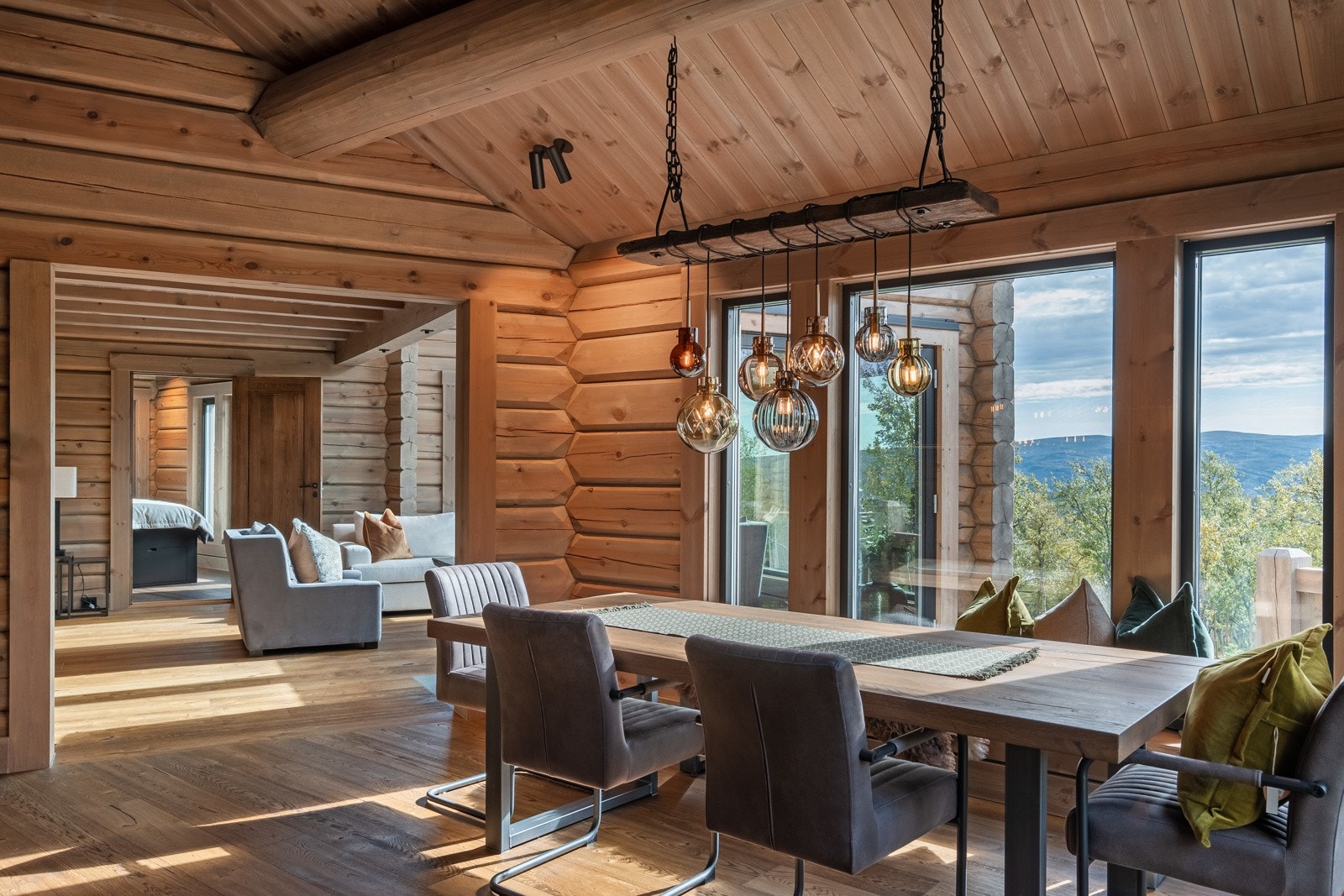 Særdeles flott håndlaftet tømmerhytte i norsk malmfuru | Høy standard | Vannbåren varme | 4 soverom | 2 bad/wc | Garasje