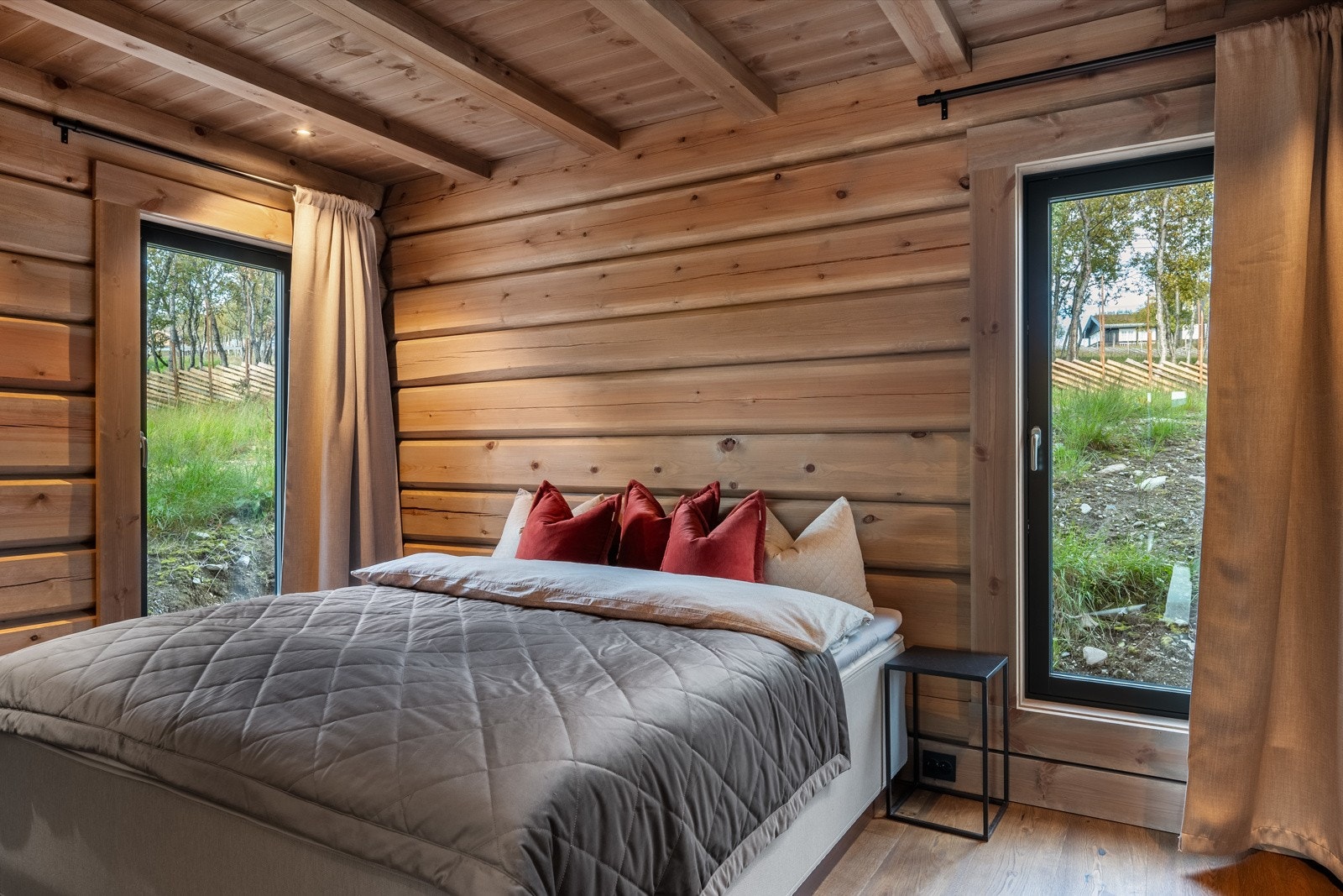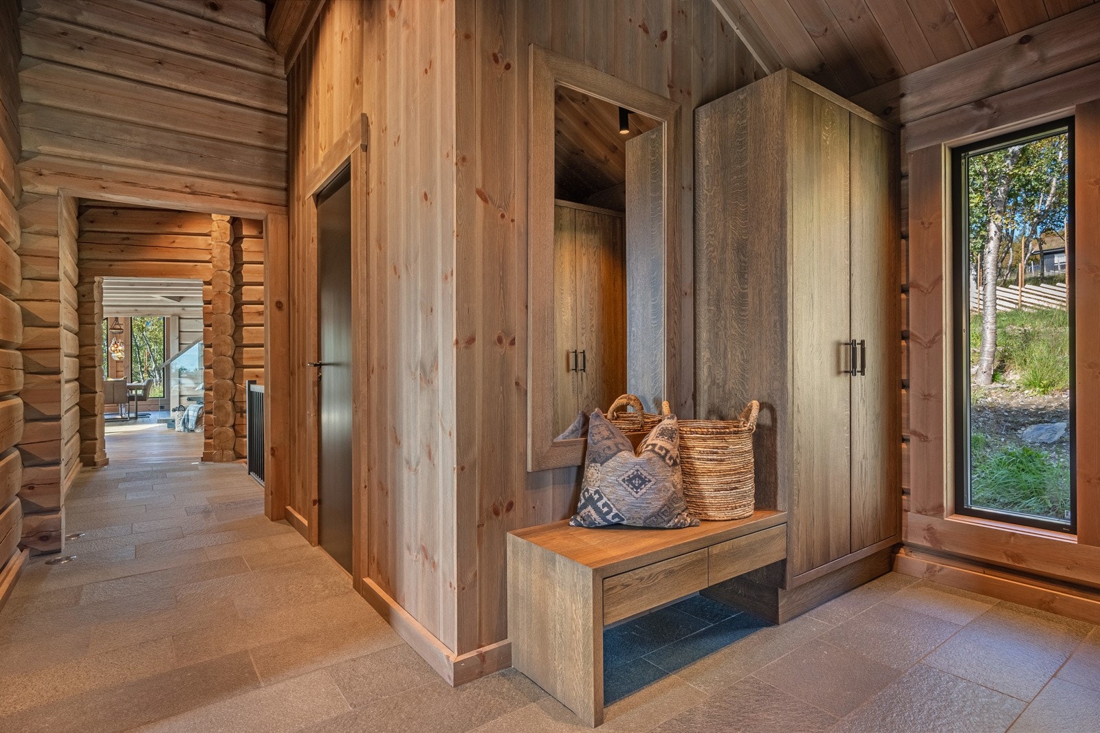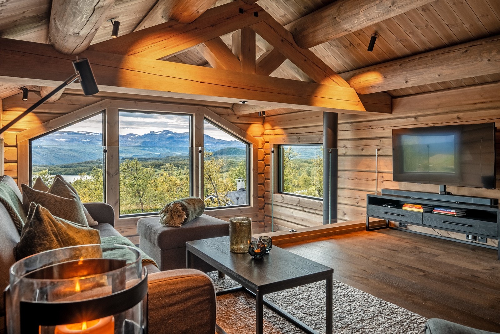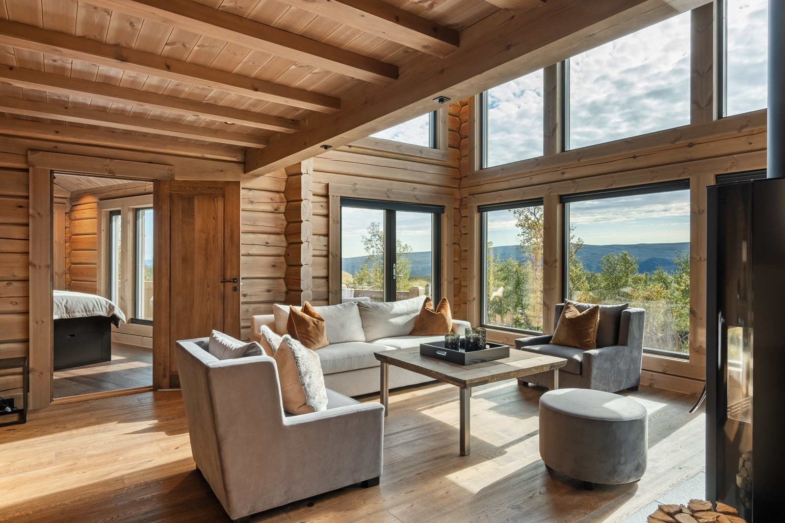 Særdeles flott håndlaftet tømmerhytte i norsk malmfuru | Høy standard | Vannbåren varme | 4 soverom | 2 bad/wc | Garasje