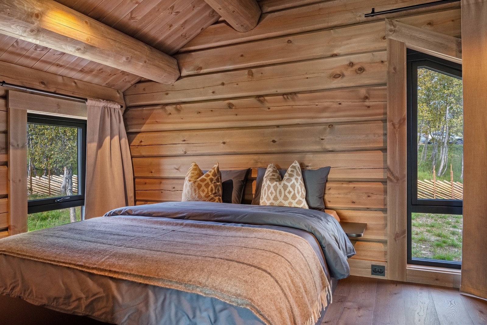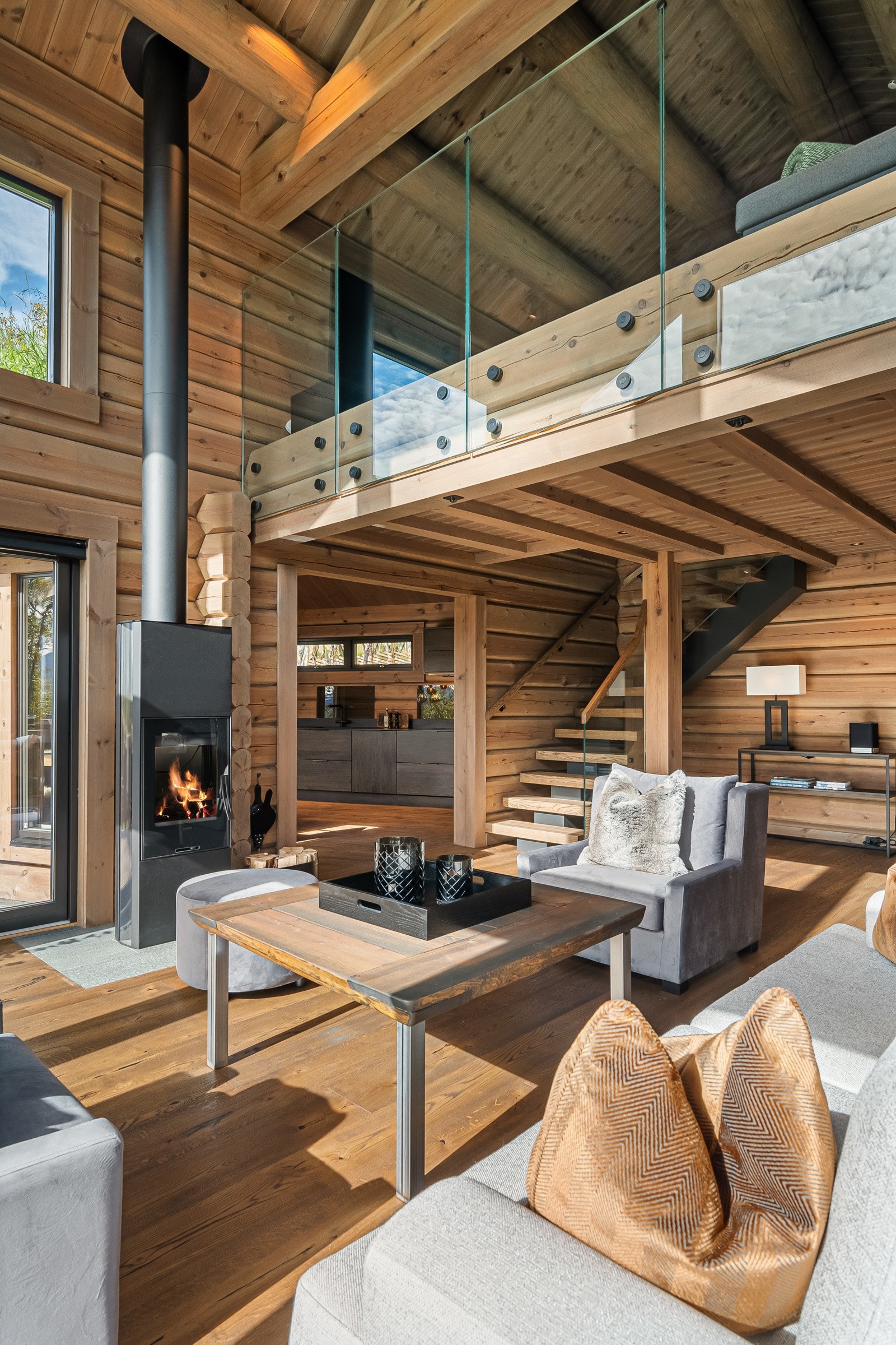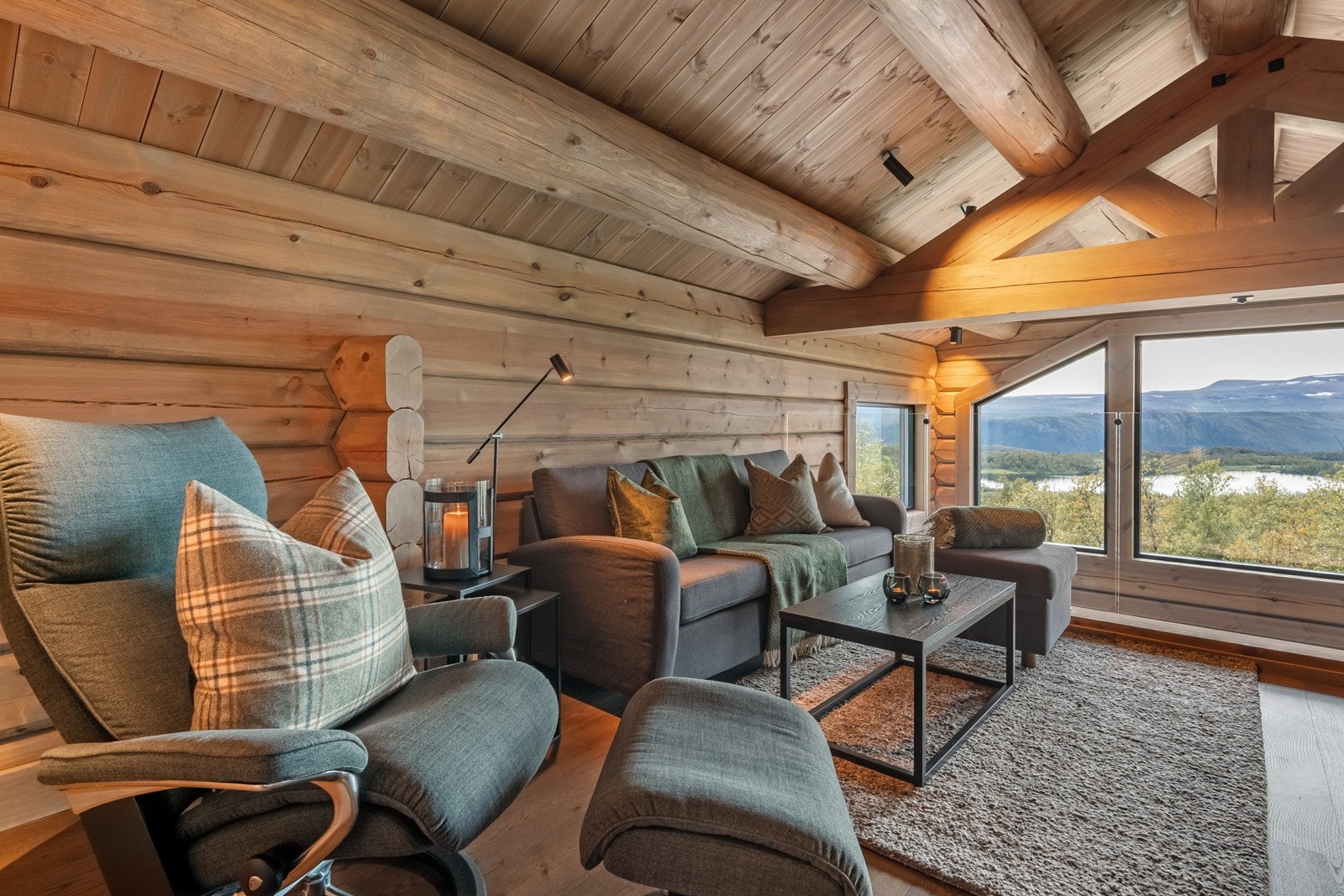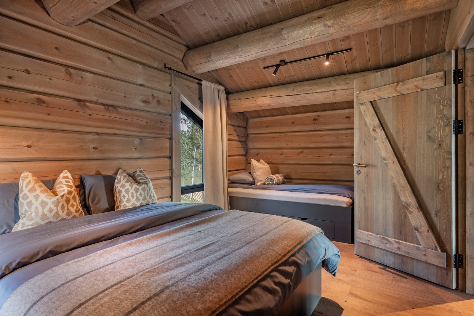 Særdeles flott håndlaftet tømmerhytte i norsk malmfuru | Høy standard | Vannbåren varme | 4 soverom | 2 bad/wc | Garasje