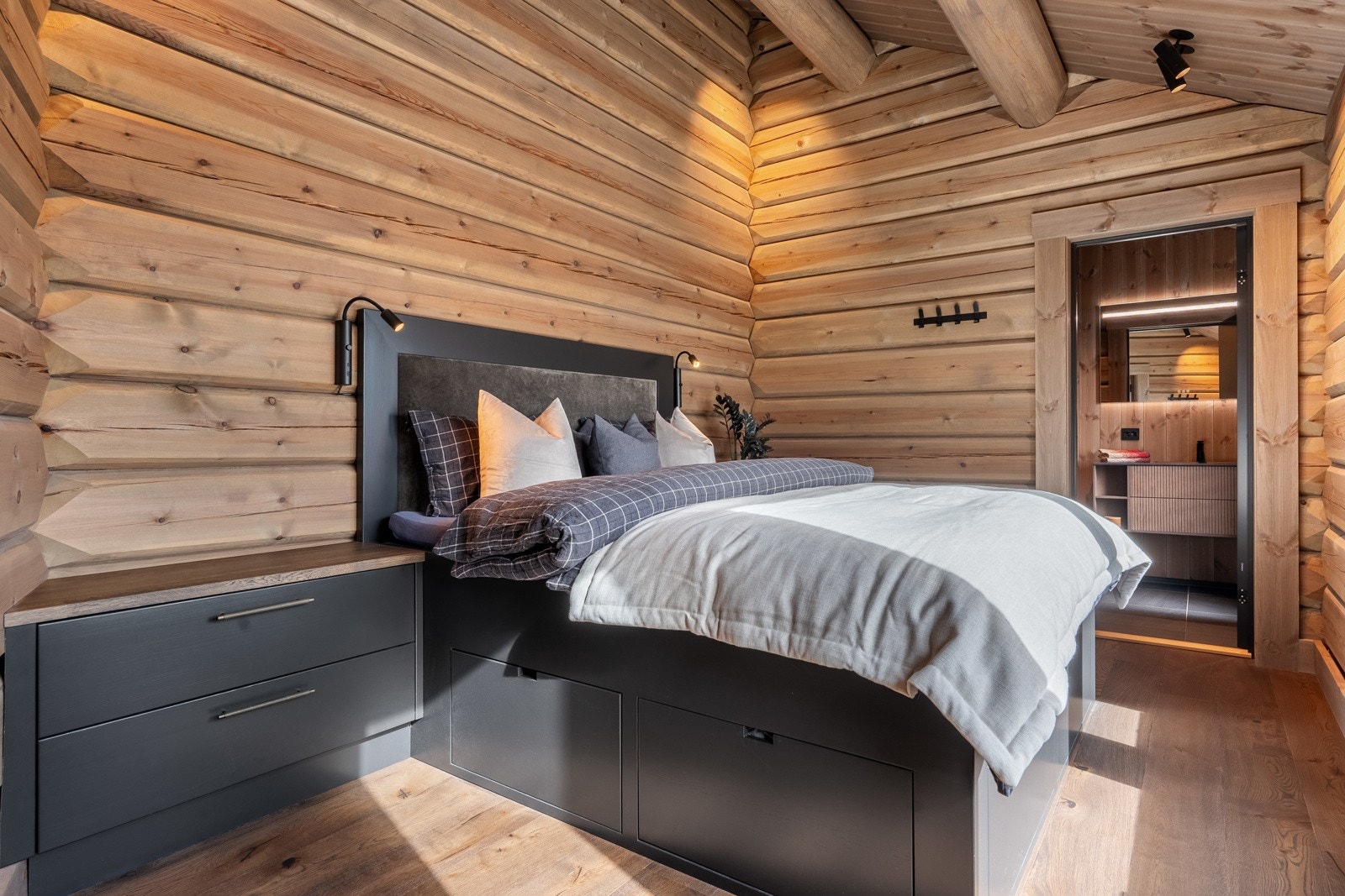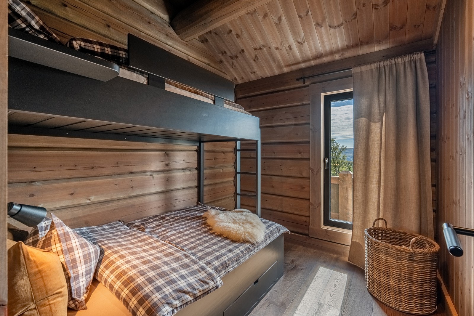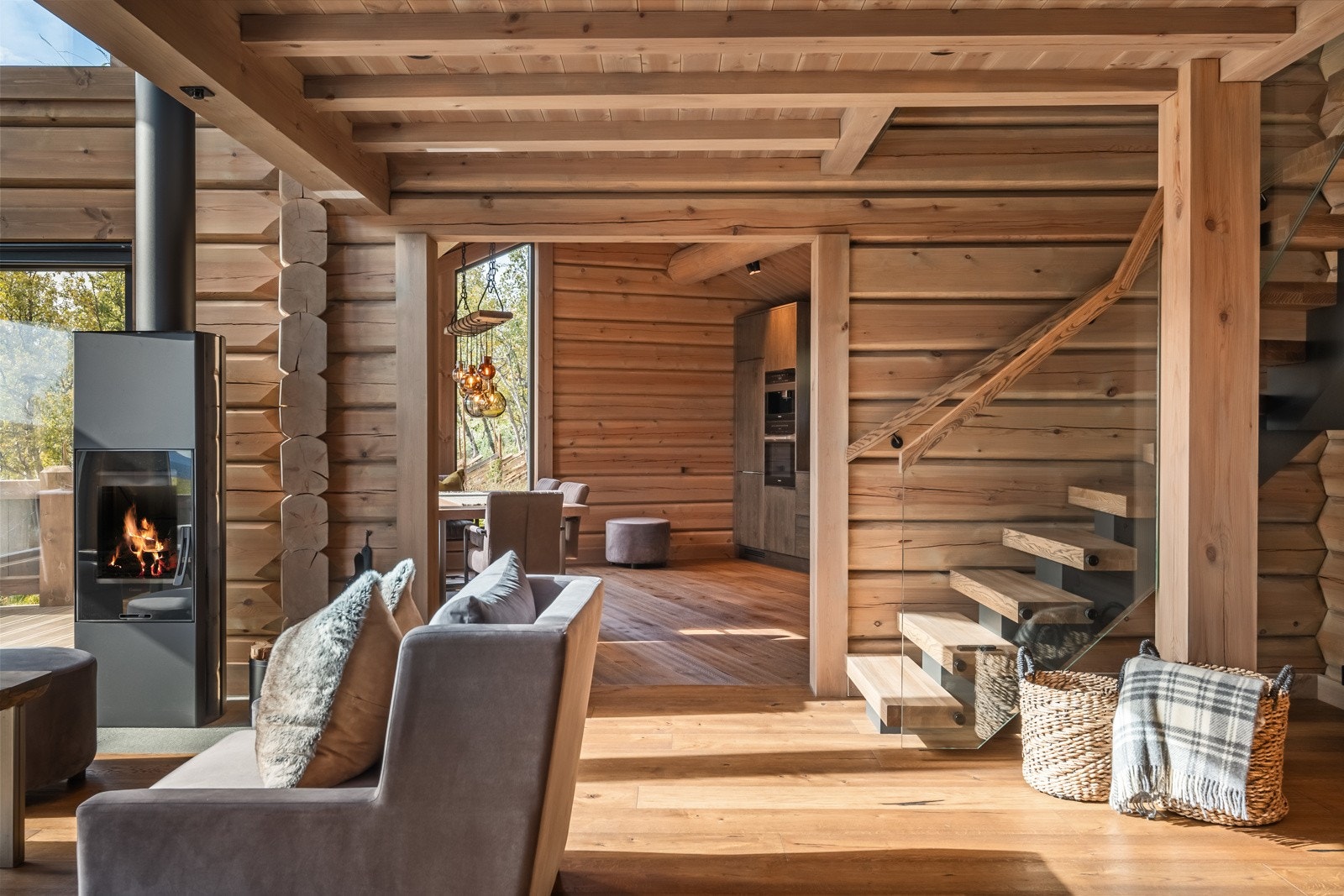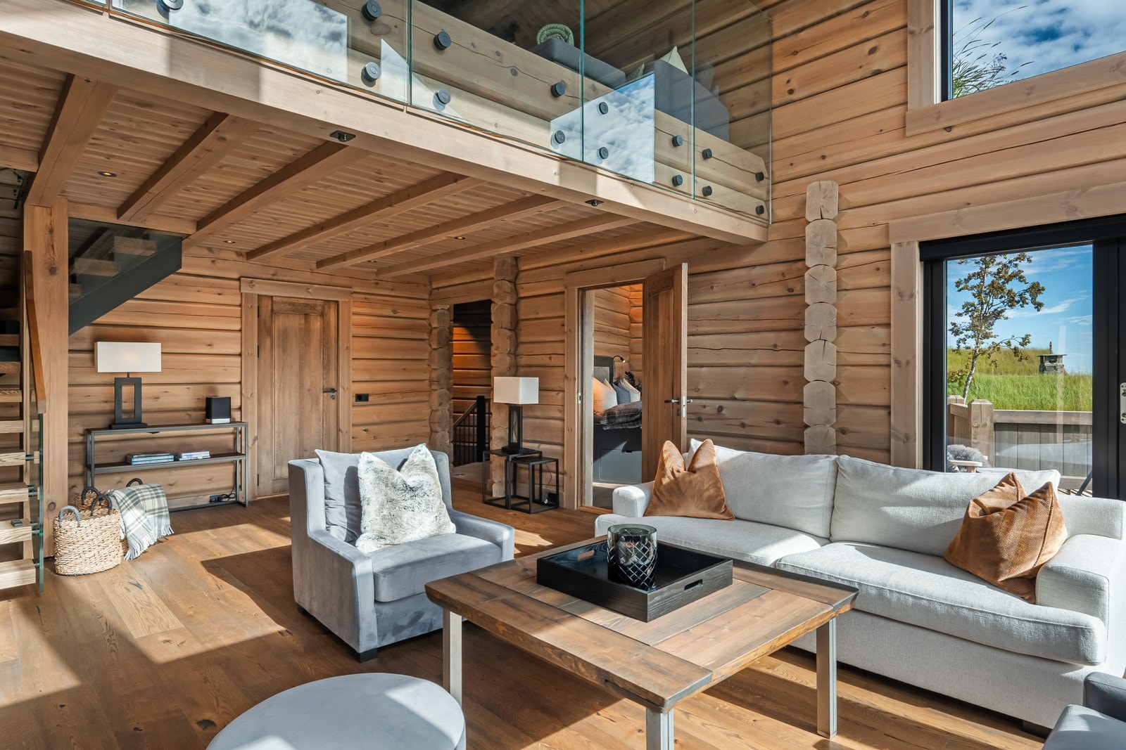 Særdeles flott håndlaftet tømmerhytte i norsk malmfuru | Høy standard | Vannbåren varme | 4 soverom | 2 bad/wc | Garasje