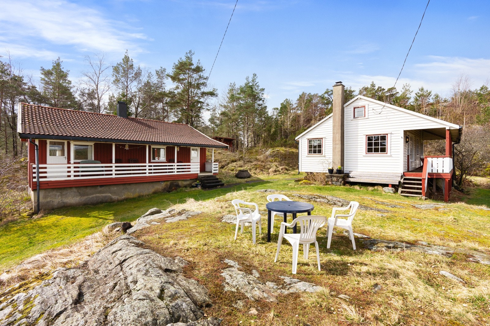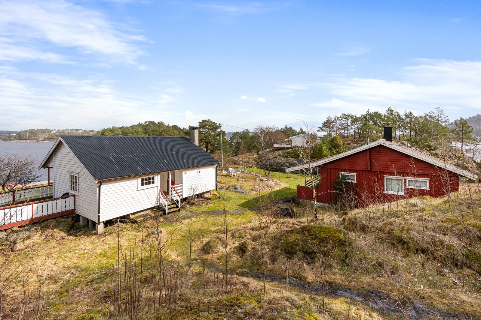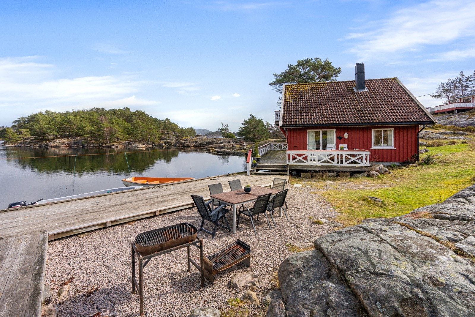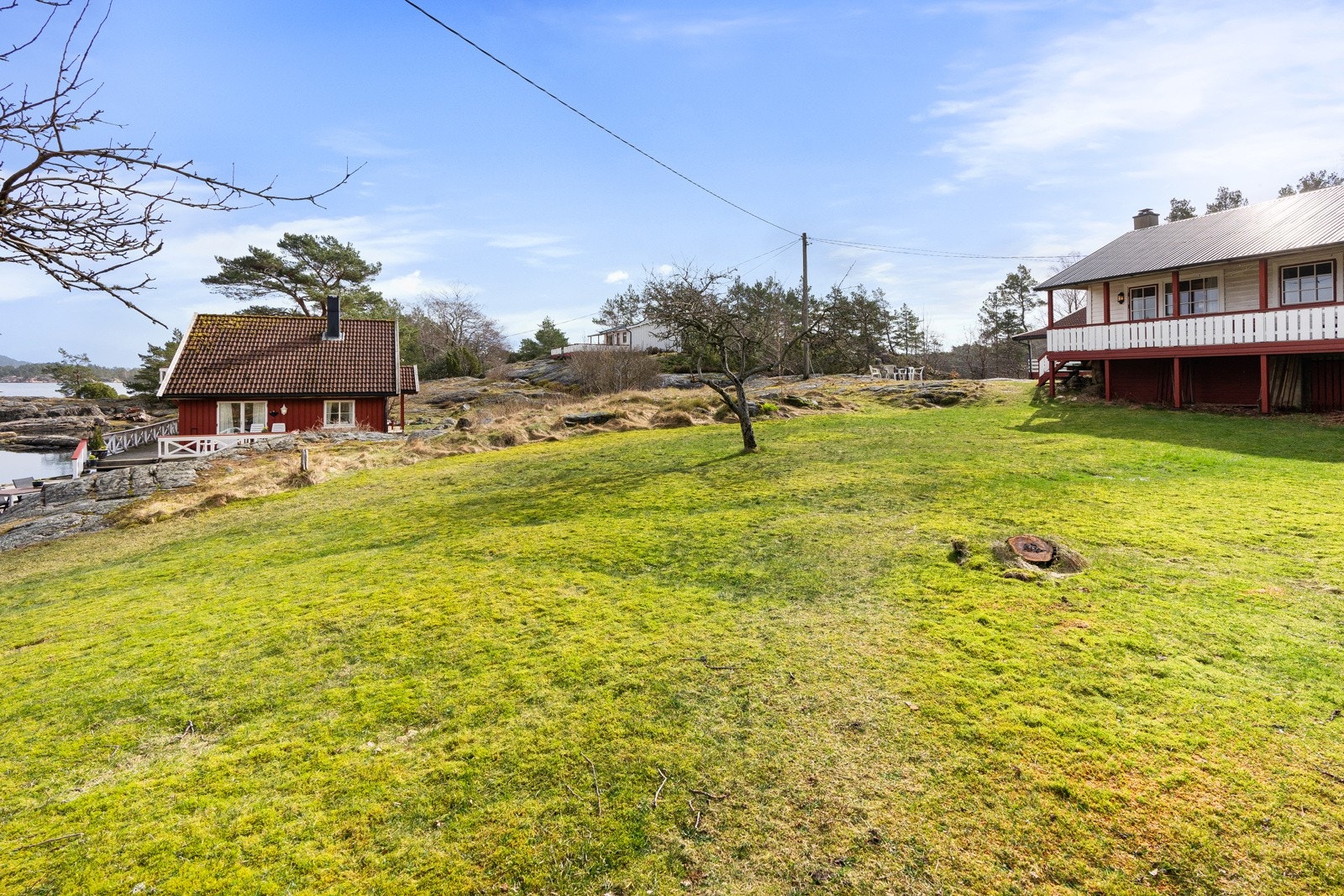 Søgne - Rivenes - utenfor Hummerviga - Stor fritidseiendom på over 47 mål med lang strandlinje, 2 brygger, og 5 hytter