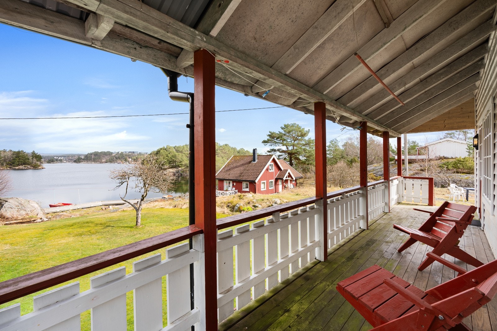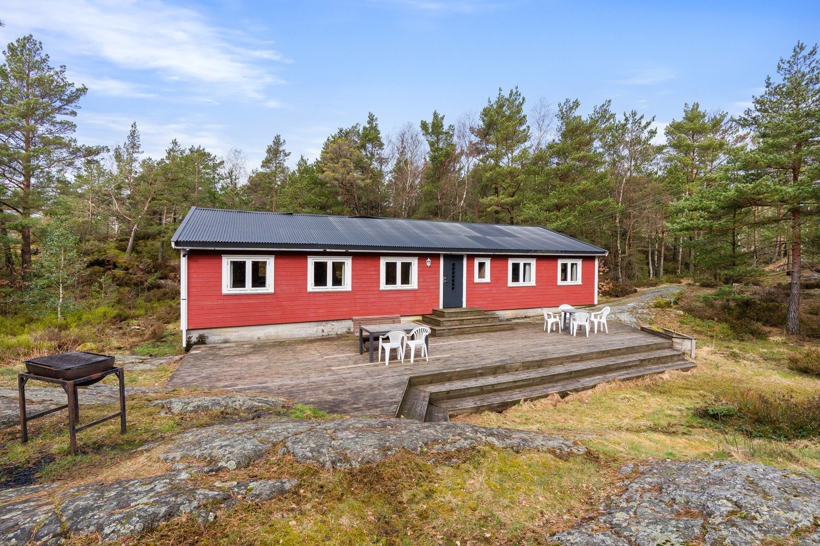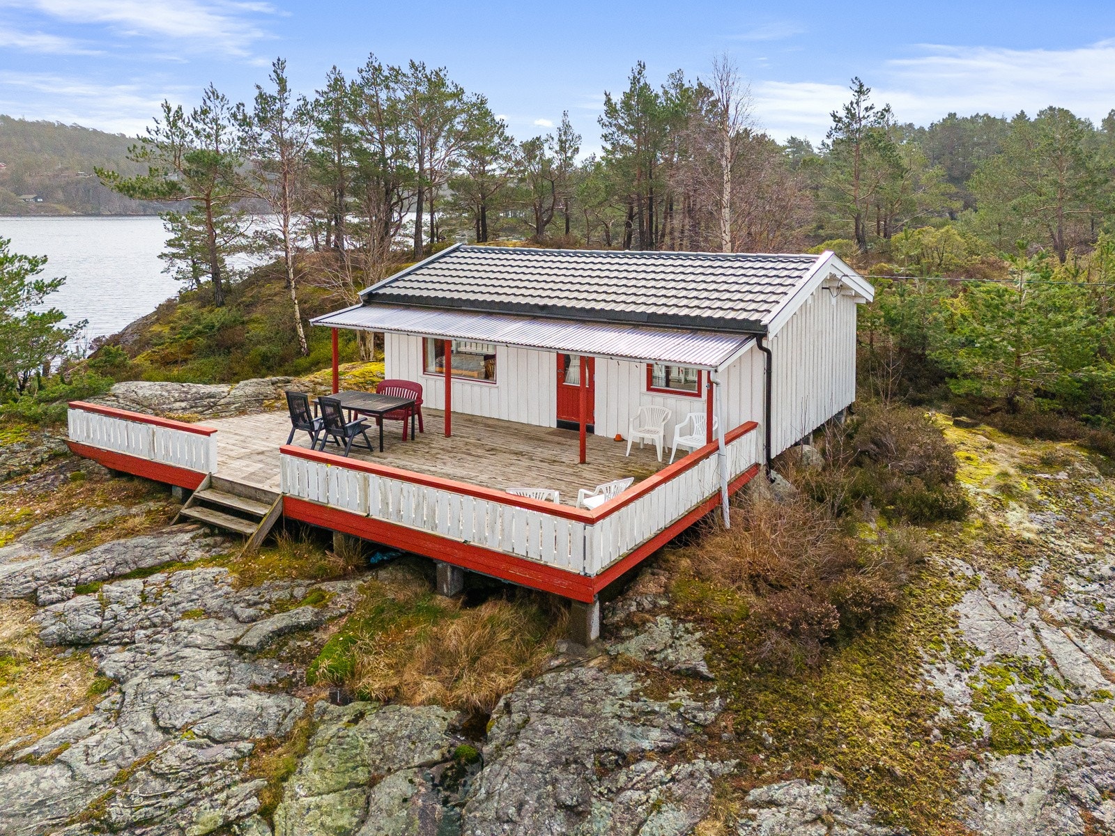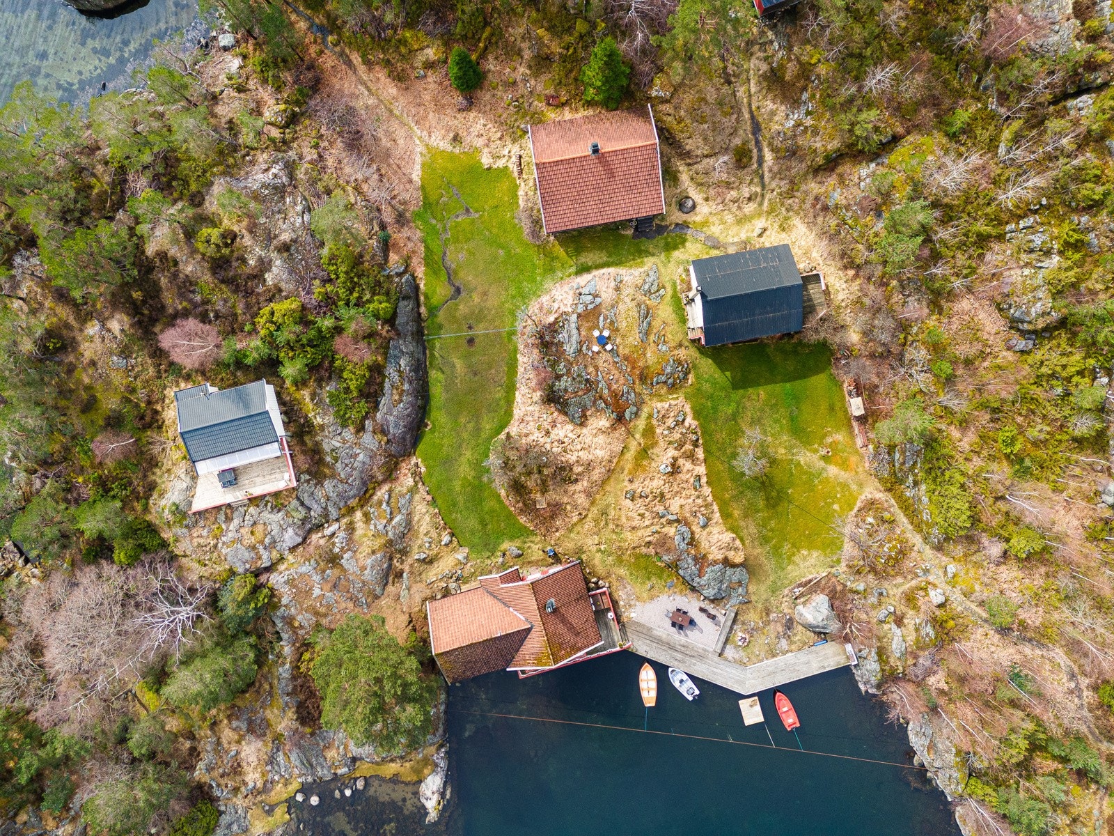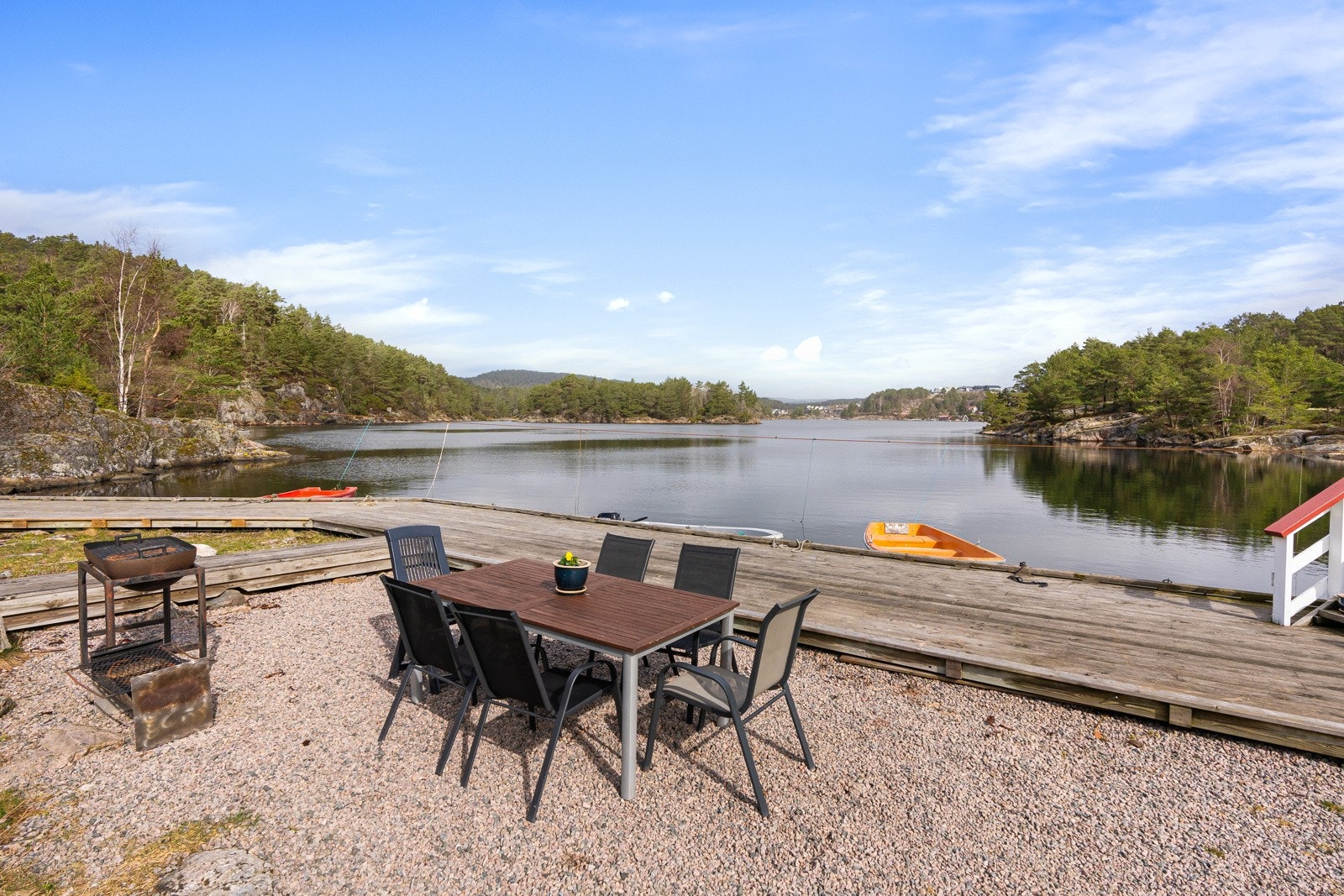 Søgne - Rivenes - utenfor Hummerviga - Stor fritidseiendom på over 47 mål med lang strandlinje, 2 brygger, og 5 hytter