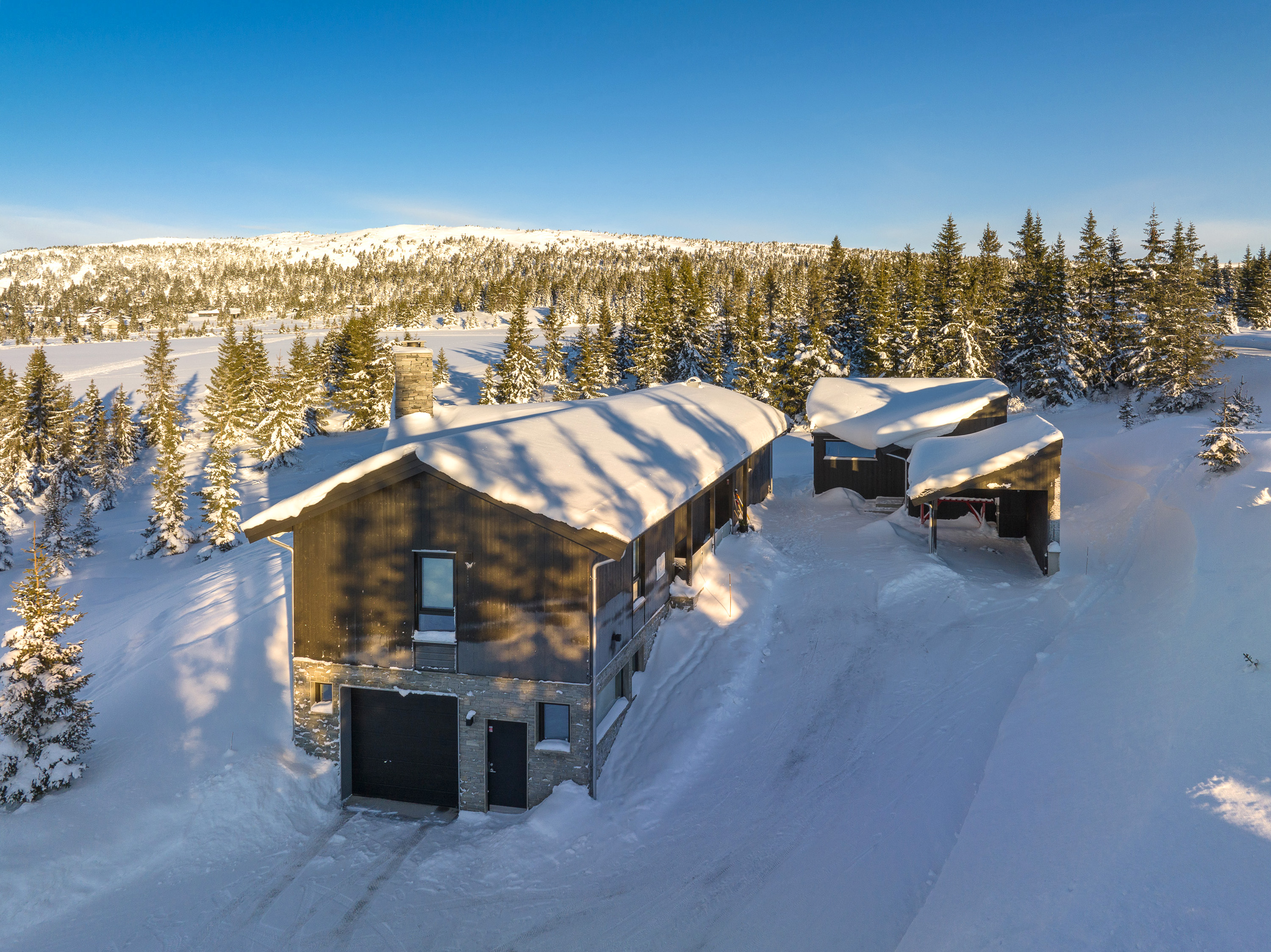 Hafjell - Flott fritidseiendom med romslig tomt; hovedhytte m/ garasje, carport og anneks | Flott utsikt | 930 m.o.h