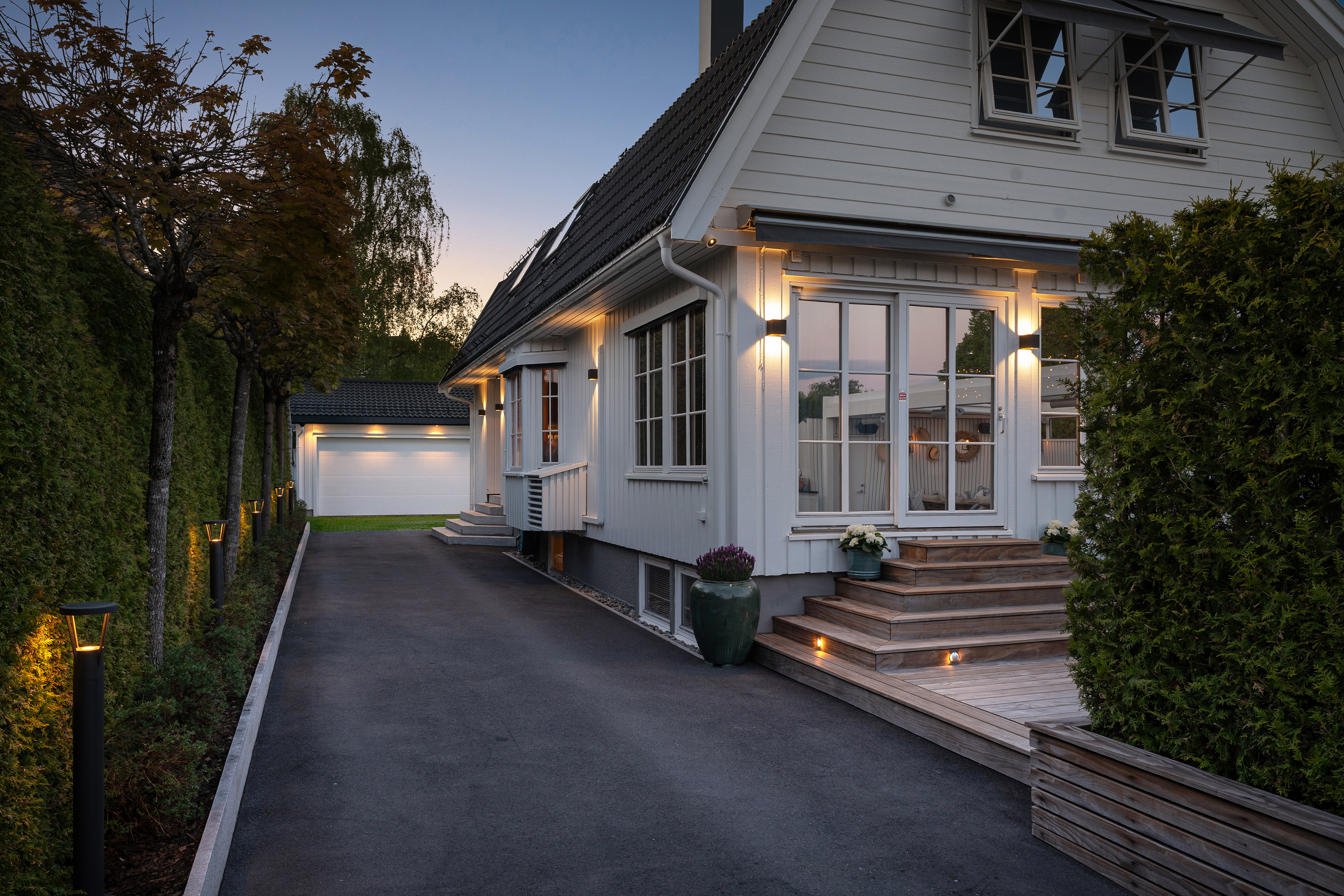 Påkostet rålekker enebolig | Hybel | Solrike og usjenerte uteplasser | Garasje | Blindvei
