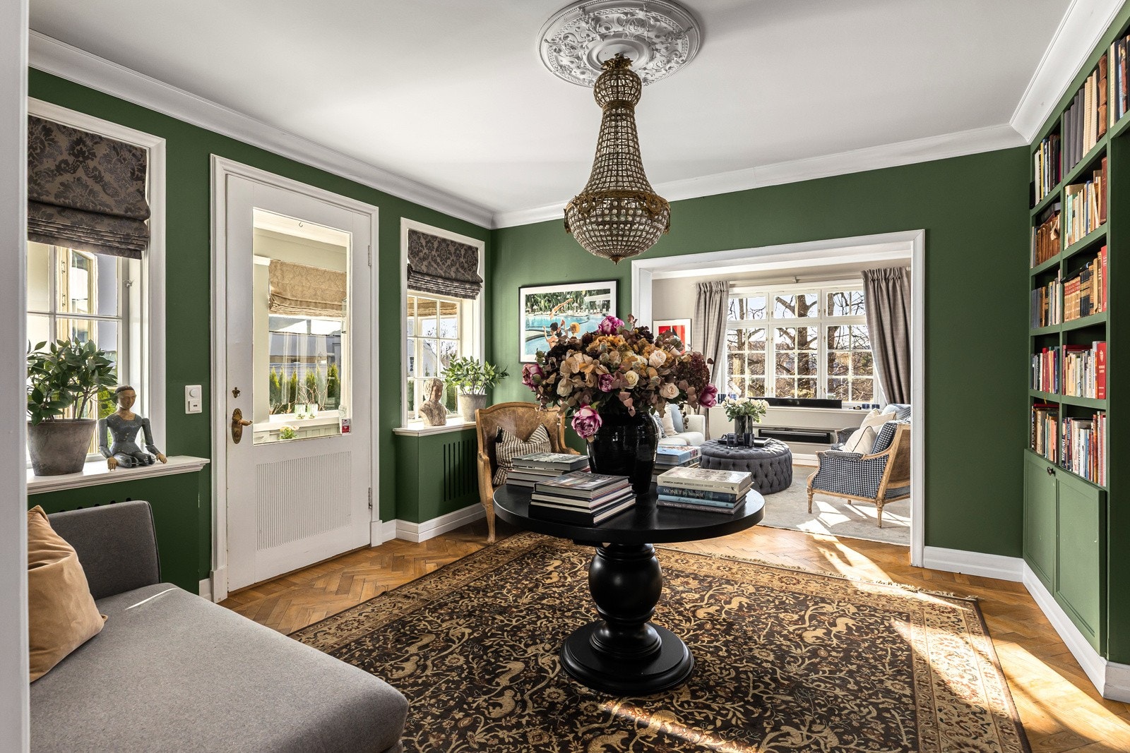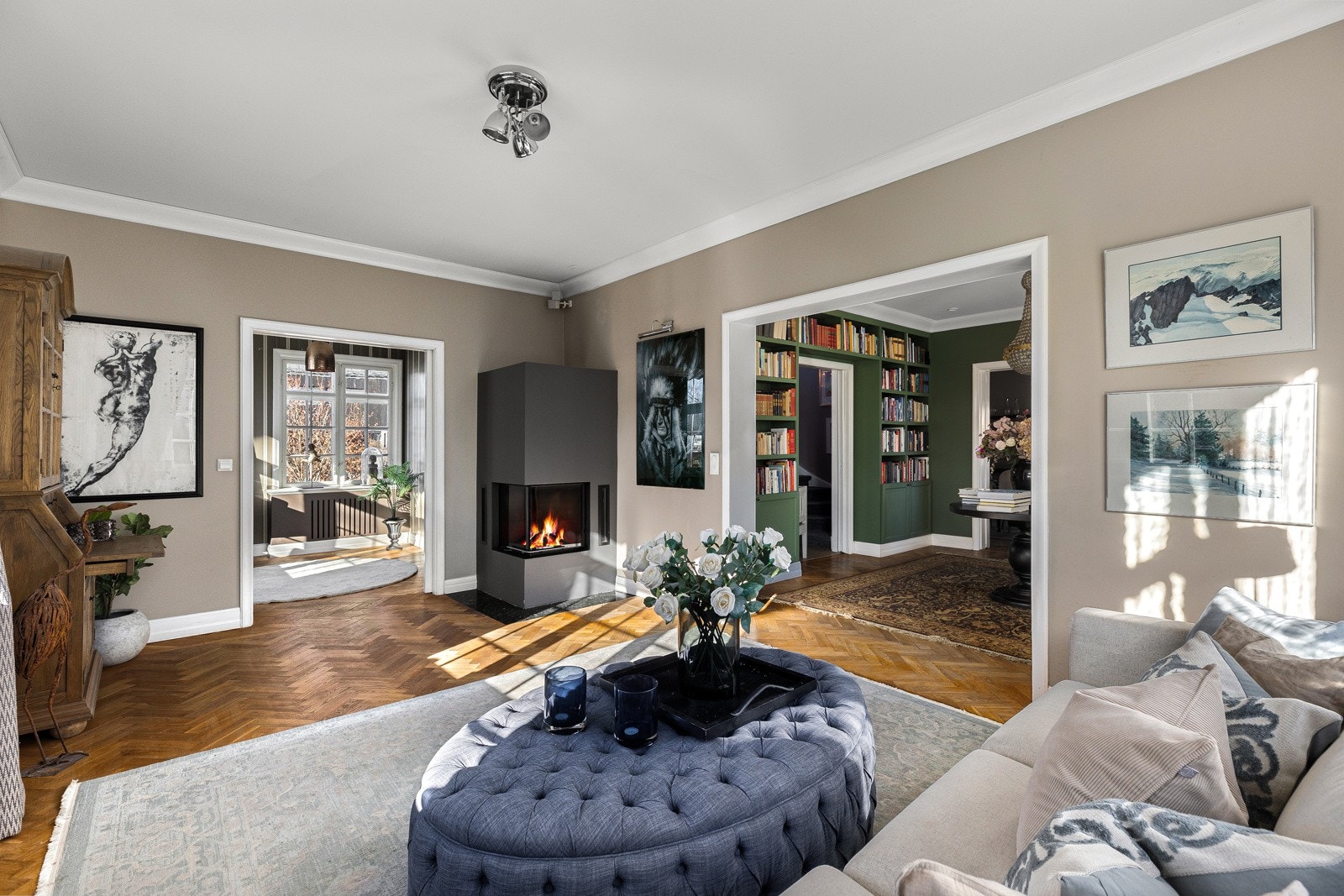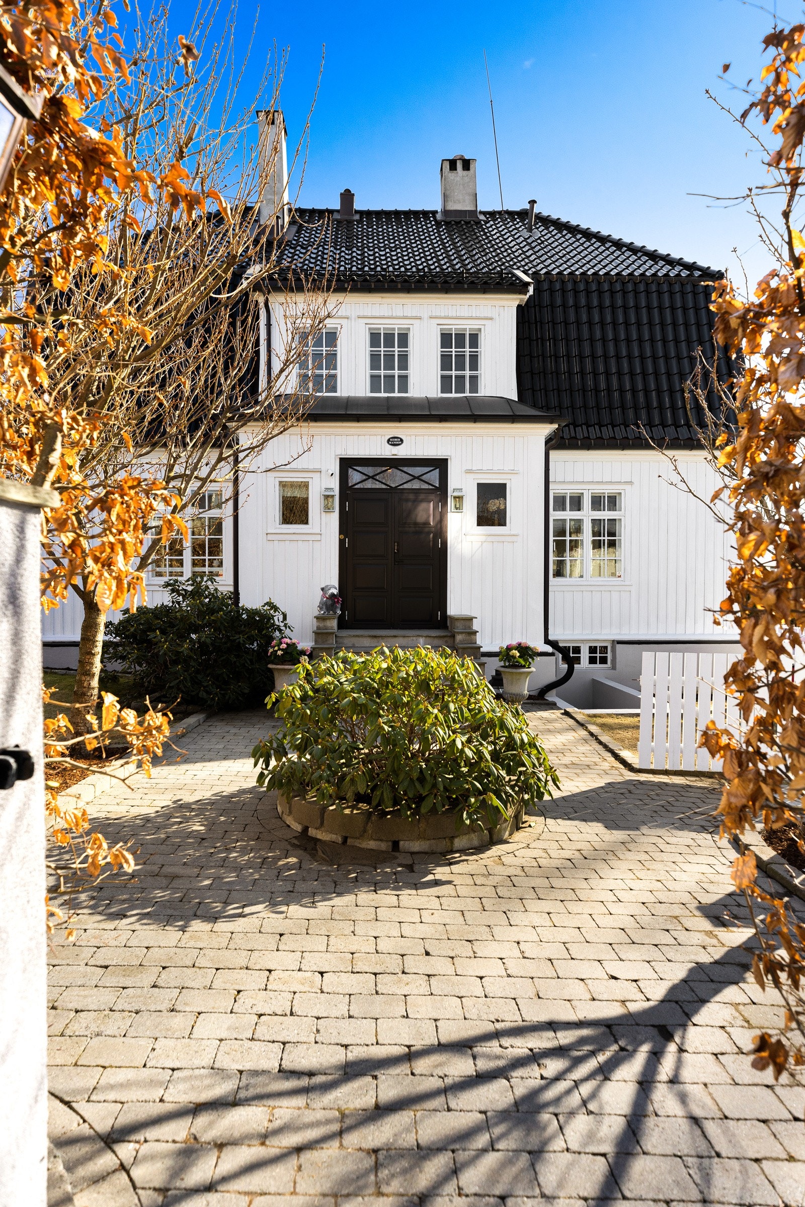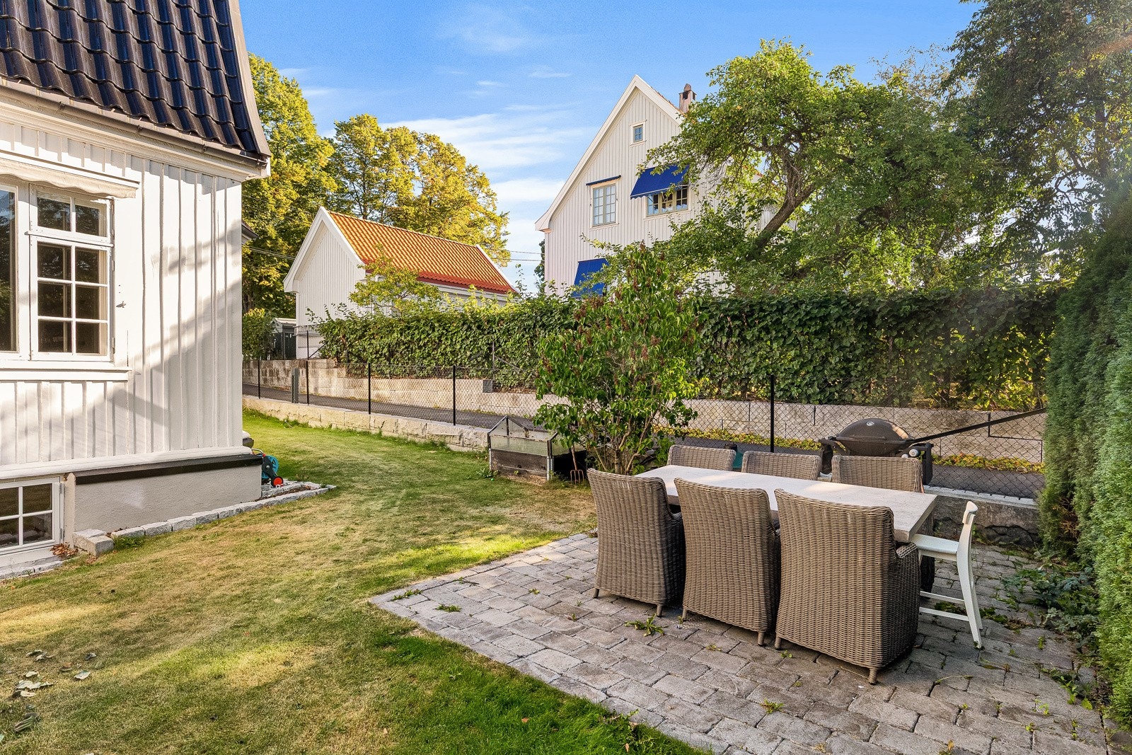 Flott praktvilla med nydelig hage, vinterhage, bibliotek, 4 stuer og 4 soverom. 2 garasjeplasser og uinnredet kjeller.