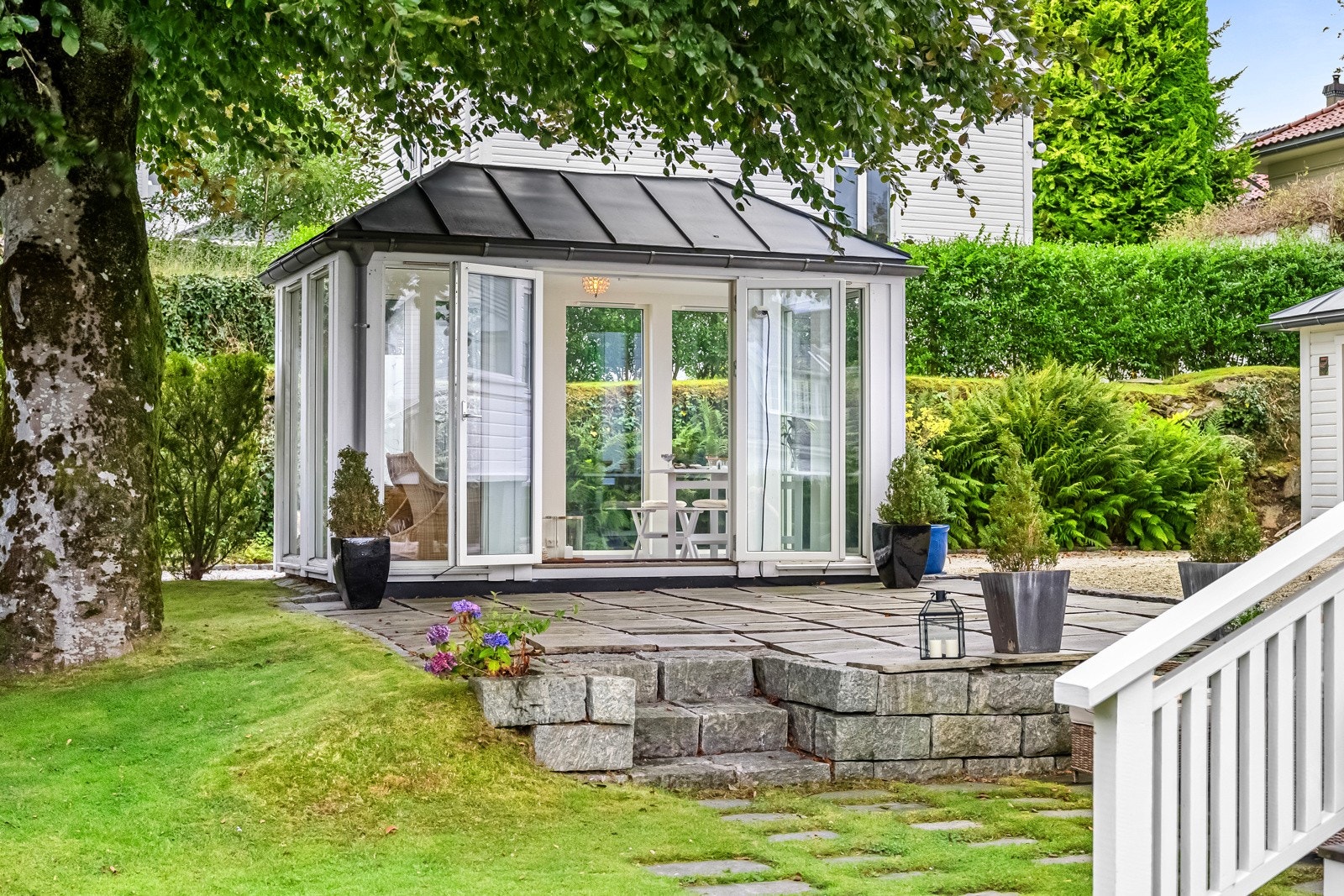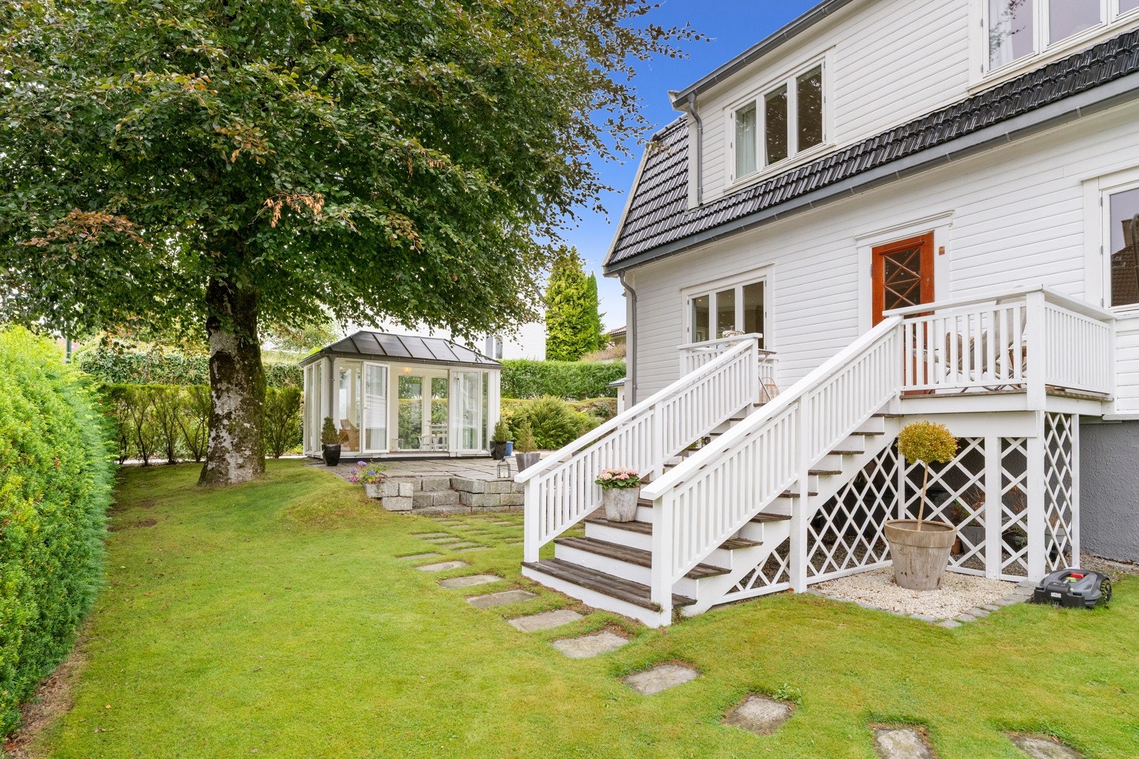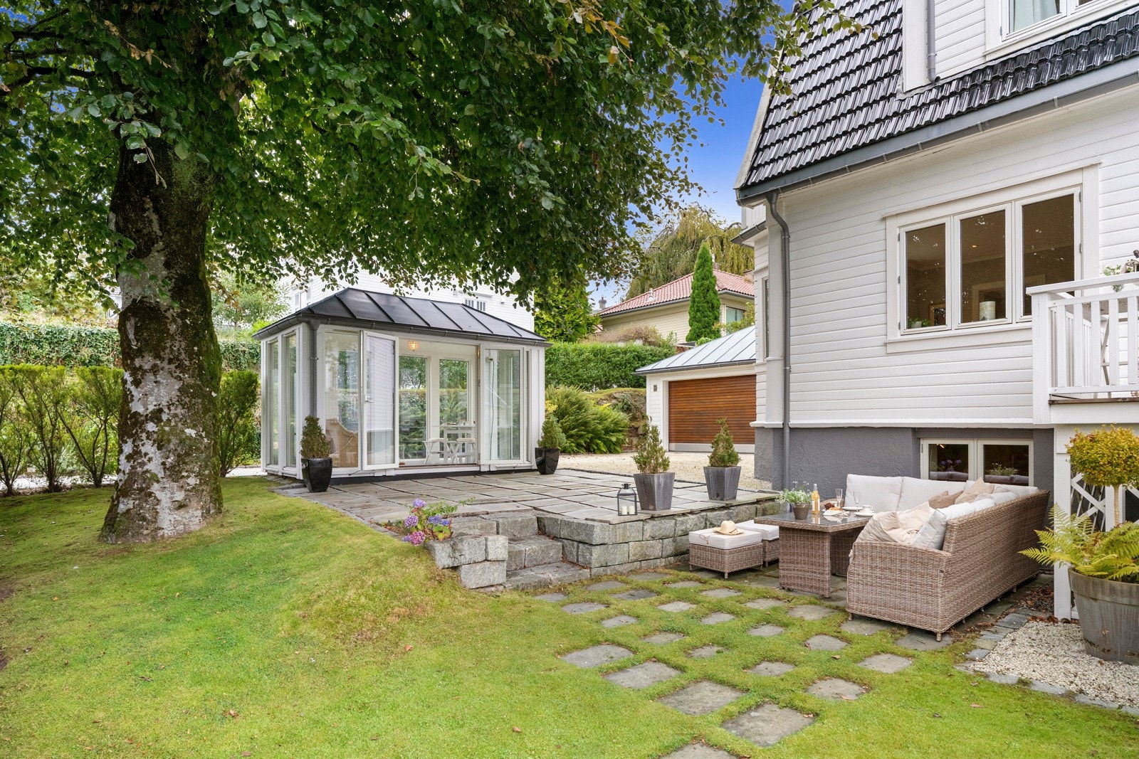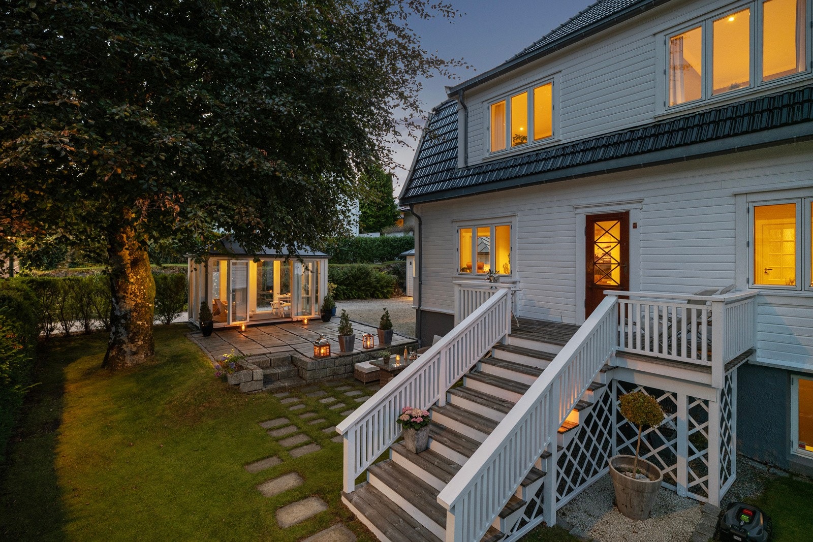 Sjarmerende villa med oppgraderte løsninger, hagestue, godkjent leilighet og dobbelgarasje