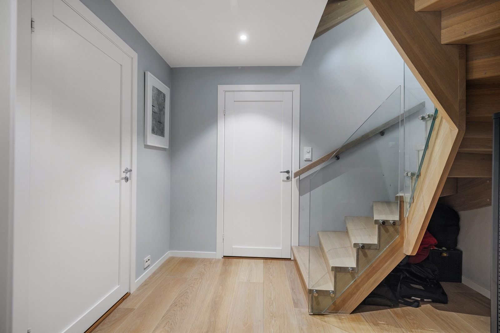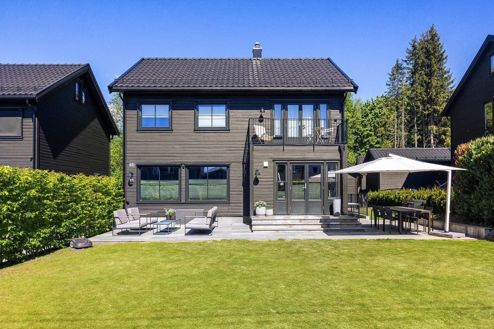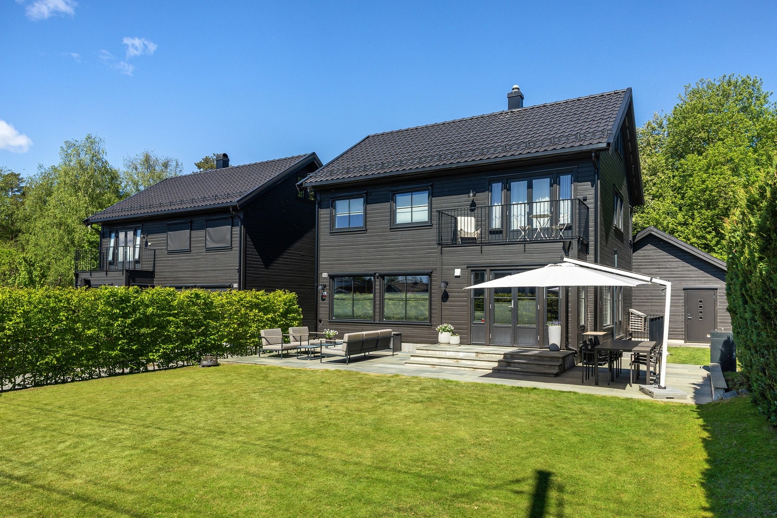 Stilren enebolig m/ høy standard og eventyrlig beliggenhet v/ Nordmarka. Egen kjellerinngang og dobbelgarasje.