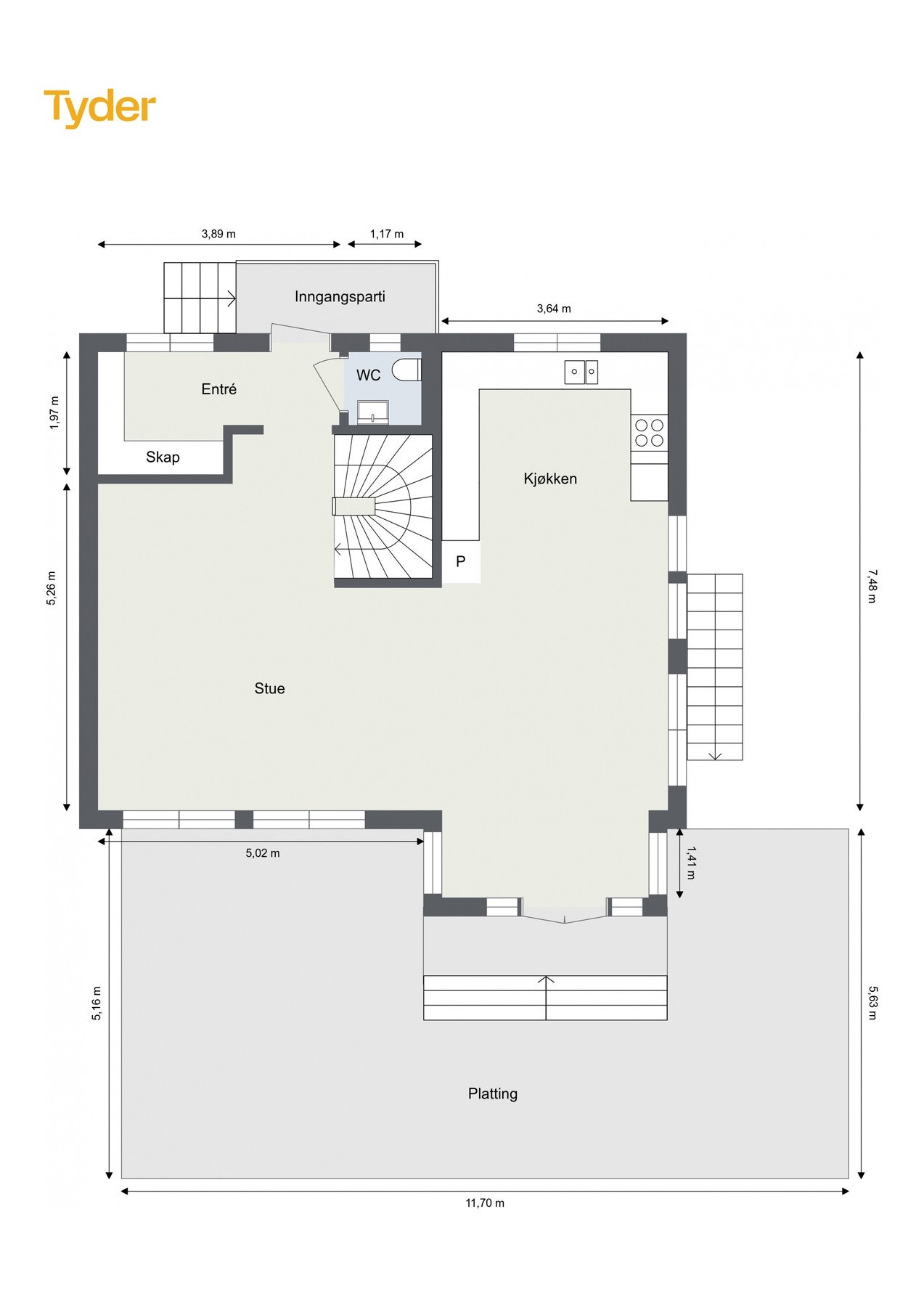 33 m2TBA (terrasse- / balkongareal)
