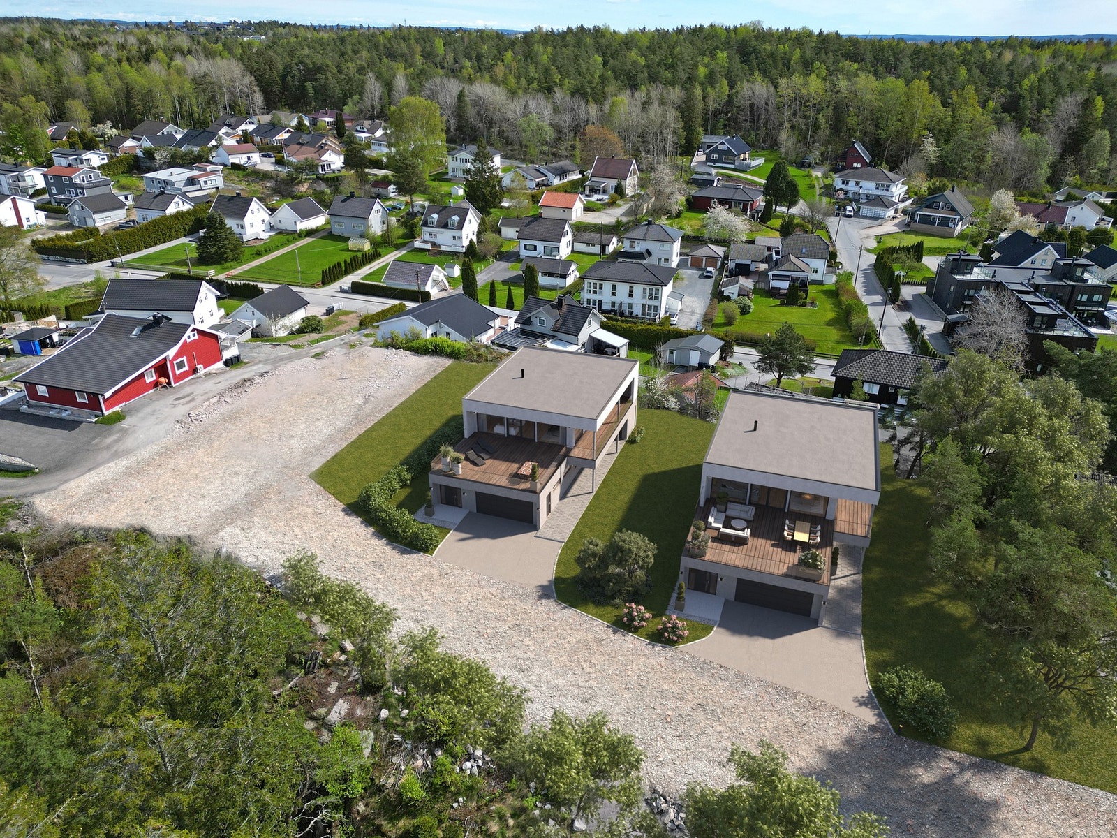 2 prosjekterte, moderne eneboliger (1 solgt) - Solrikt og skjermet - Gode solforhold - Mellom byene - Mulighet for hybel