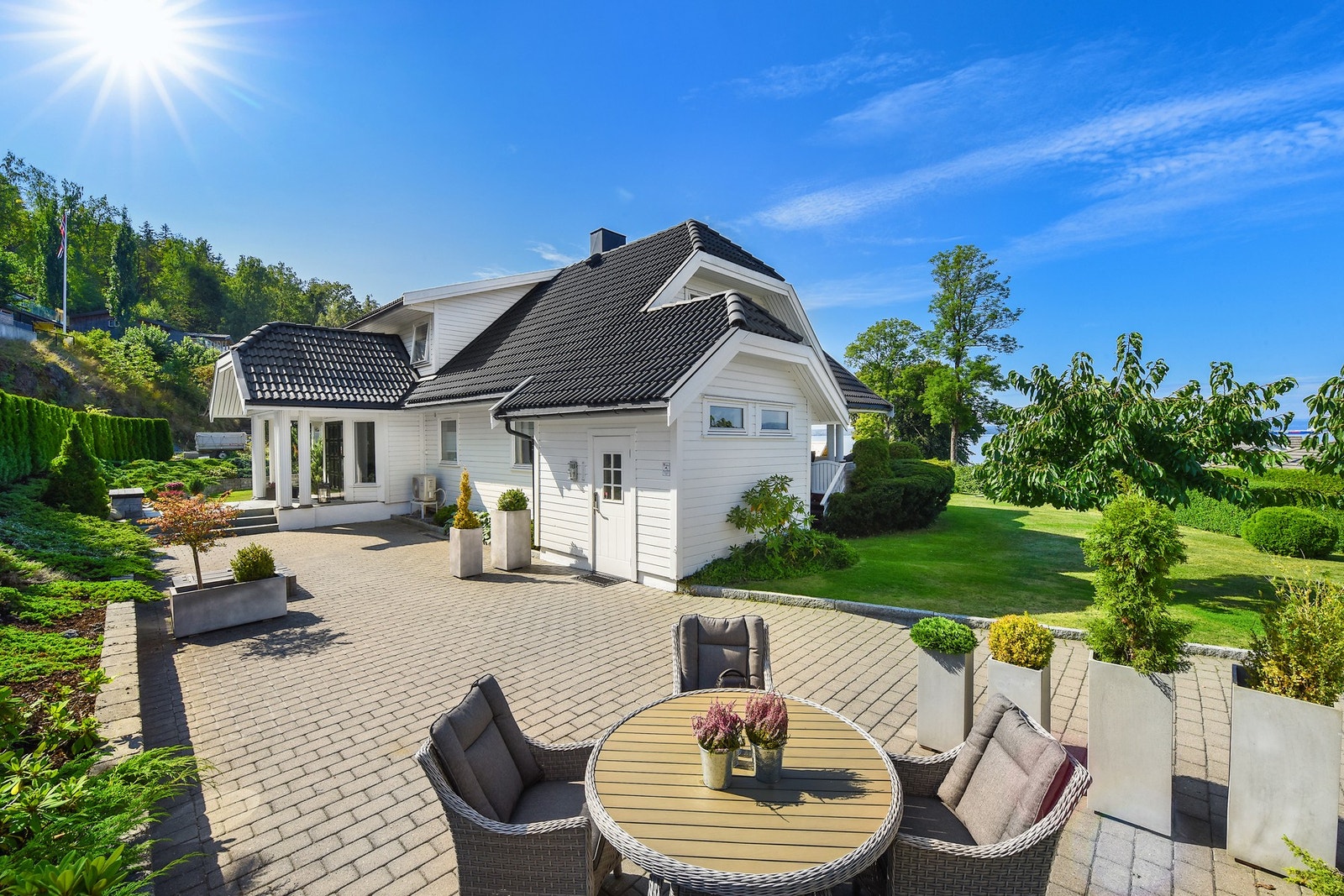 Strandnær og innbydende familiebolig – med dobbelgarasje og kort vei til skole.